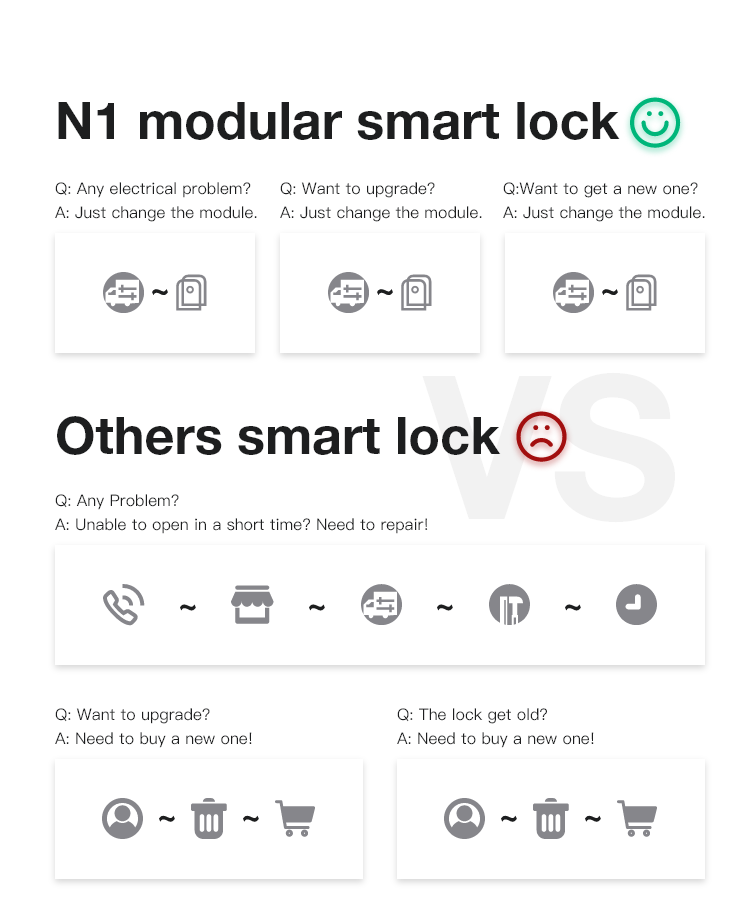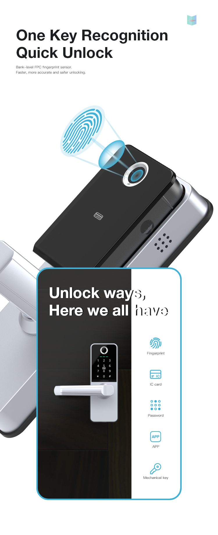 - Fingerprints, passwords, IC cards, and mobile apps have multiple ways to open doors